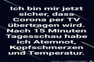 | Corona wird durchs Fernsehen übertragen Bild (76.34 KB) 17Lustiges → klasse Sprüche und Witze und Corona | Lustiges → klasse Sprüche und Witze und Corona | 24.03.21-17:22 | ||