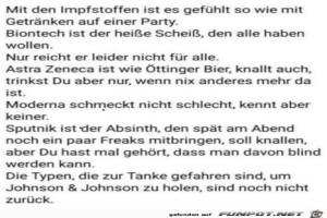 | Die Sache mit den Impfstoffen Bild (63.55 KB)  16Lustiges → klasse Sprüche und Witze und Corona  | Lustiges → klasse Sprüche und Witze und Corona | 13.03.21-17:35 | Maddin2004 | |
