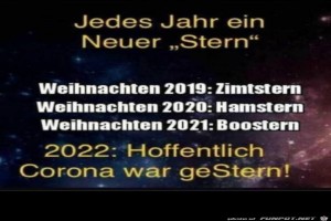 | Jedes Jahr ein neuer Stern Bild (54.85 KB) 1Lustiges → klasse Sprüche und Witze und Corona | Lustiges → klasse Sprüche und Witze und Corona | 05.02.22-18:27 | ||