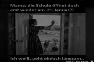 | Die Schule öffnet doch erst am 31.1.2021 Bild (44.28 KB) 20Lustiges → witzige Bilder und Corona | Lustiges → witzige Bilder und Corona | 17.01.21-10:13 | ||