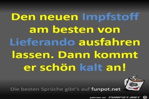 | Impfstoff liefern Bild (56.46 KB) 5Lustiges → klasse Sprüche und Witze und Corona Wenigstens ist noch auf etwas Verlass ;-) | Lustiges → klasse Sprüche und Witze und Corona | 25.12.20-10:47 | ||