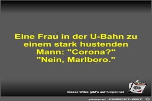 | Eine Frau in der U-Bahn zu einem stark hustenden Mann Bild (26.14 KB) 6Lustiges → klasse Sprüche und Witze und Corona | Lustiges → klasse Sprüche und Witze und Corona | 07.11.20-08:00 | Fossy |