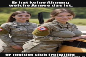 | Er wird freiwillig zur Armee gehen Bild (132.44 KB) 10Lustiges → witzige Bilder und Frauen, Mädels, Girls | Lustiges → witzige Bilder und Frauen, Mädels, Girls | 16.01.24-16:53 | Celine |