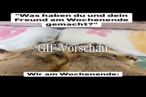 | Wir am Wochenende Bild (4.04 MB) 3Lustiges → witzige Bilder → animierte Bilder und Mit Tieren | Lustiges → witzige Bilder → animierte Bilder und Mit Tieren | 08.11.24-10:28 | Louie44 | |