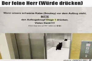 | Katze liftet alleine Bild (58.41 KB) 6Lustiges → witzige Bilder und lustige Katzen | Lustiges → witzige Bilder und lustige Katzen | 23.04.23-08:31 | ||