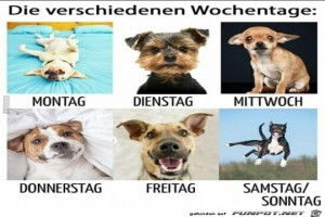 | die verschiedenen Wochentage Bild (71.14 KB) 4Lustiges → witzige Bilder und lustige Hunde | Lustiges → witzige Bilder und lustige Hunde | 05.03.21-20:23 | Sia | |