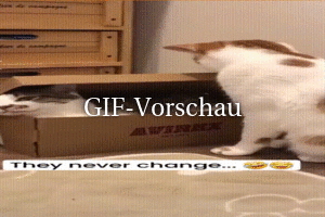 | Geh rein ich mach den Karton zu Bild (5.9 MB) 5Lustiges → witzige Bilder → animierte Bilder und lustige Katzen | Lustiges → witzige Bilder → animierte Bilder und lustige Katzen | 26.04.24-14:41 | Lieselotte | |