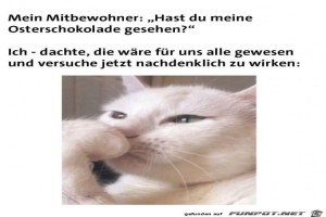| Osterschokolade weggegessen Bild (46.9 KB) 12Lustiges → witzige Bilder und lustige Katzen | Lustiges → witzige Bilder und lustige Katzen | 10.04.21-09:54 | SWolle | |