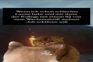 | Wenn ich eh schon schlechte Laune habe Online-Video 2Lustiges → Mit Tieren → lustige Katzen | Lustiges → Mit Tieren → lustige Katzen | 22.09.-07:53 | Louisa | |