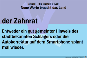 | 0619-Neue-Worte-Zahnrat Bild (67.53 KB) 1Lustiges → neue Wörter braucht das Land der Zahnrat: Entweder ein gut gemeinter Hinweis des stadtbekannten Schlägers oder die Autokorrektur auf dem Smartphone spinnt mal wieder. | Lustiges → neue Wörter braucht das Land | 31.03.22-20:30 | Luz | |