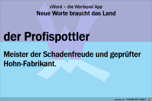 | 0620-Neue-Worte-Profispot tler Bild (62.16 KB) 1Lustiges → neue Wörter braucht das Land der Profispottler: Meister der Schadenfreude und geprüfter Hohn-Fabrikant. | Lustiges → neue Wörter braucht das Land | 31.03.22-20:31 | Luz | |