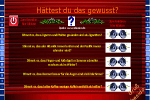 | Wer wird Millionär 80 Powerpoint (1.55 MB) 51Lustiges → Rätsel Quiz 10 leichte interessante Fragen wieder auf dich warten, musst nur den Millionär gleich starten. | Lustiges → Rätsel Quiz | 11.02.24-08:28 | hesido | |