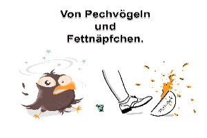 | Von Pechvögeln und Fettnäpfchen Powerpoint (11.57 MB) 47Lustiges → Wissenswertes → Redensarten Hier kannst du mal wieder richtig was lernen. Weißt du, wo der Begriff Pechvogel herkommt? Oder warum man in das berühmt berüchtigte Fettnäpfen tritt? Lies es doch gleich mal nach. Du wirst danach mit Sicherheit schlauer sein ;-) | Lustiges → Wissenswertes → Redensarten | 18.10.23-21:44 | lucky | |