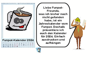| Funpot-Jahreskalender Powerpoint (6.75 MB) 43Lustiges Was für eine tolle Idee. Diesen Funpot-Kalender solltest du auf jeden Fall ausdrucken. Dann musst du schon kein Geld für einen neuen Kalender ausgeben und du hast jeden Monat noch einen netten Text zum Lesen ;-) | Lustiges | 09.11.23-09:59 | lucky | |