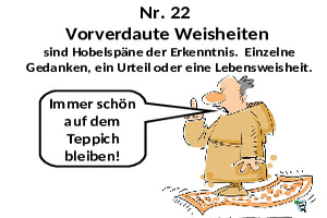 |  56 |     Vorschau     | Vorverdaute Weisheiten Nr. 22 Powerpoint (6.38 MB)  56 Lustiges Vorverdaute Weisheiten sind Hobelspäne der Erkenntnis. Einzelne Gedanken, ein Urteil oder eine Lebensweisheit. Die solltest du dir auf keinen Fall entgehen lassen ;-) | Lustiges | 07.12.21-21:53 | lucky | |