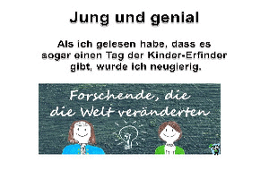 | Jung und genial Powerpoint (5.6 MB) 38Lustiges → Wissenswertes Man ist doch immer wieder fasziniert wie schlau manche Menschen sind und welch geniale Dinge sie oft aufgrund einer Alltagssituation erfinden. Guck doch gleich mal hier rein, dann siehst du einige geniale Erfindungen junger Leute. Viel Spaß dabei! | Lustiges → Wissenswertes | 29.07.24-22:56 | lucky | |