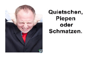 | Quietschen, Piepen oder Schmatzen Powerpoint (6.19 MB) 34Lustiges → Wissenswertes Geräusche empfindet jeder anders. Ich hatte mal eine Kollegin, die war vom Kauen ihres Zimmerkollegen total genervt. Der Arme tat einem schon richtig leid. Aber hat eben jeder seine persönlichen Empfindungen, die er auch nur schwer abstellen kann. Eine Freundin meiner Frau kann beispielswe... zum Blog | Lustiges → Wissenswertes | 19.08.24-22:01 | lucky | |