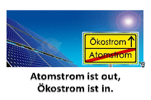 | Atomstrom ist out, Ökostrom ist in Powerpoint (7.35 MB) 41Lustiges Wenn du bisher noch nicht wusstest wie du Strom sparen kannst, dann weißt du es nach Ansicht dieser äußerst heiteren Präsentation ;-) | Lustiges | 06.09.24-21:40 | lucky | |