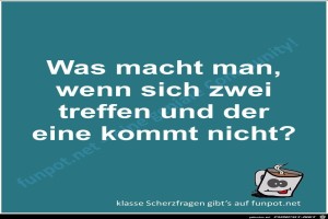 | Scherzfrage Bild (71.09 KB) 4Lustiges → Scherzfragen | Lustiges → Scherzfragen | 05.01.24-12:34 | Fossy | |