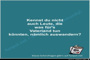 | Scherzfrage Bild (47.92 KB) 2Lustiges → Scherzfragen | Lustiges → Scherzfragen | 05.11.23-12:19 | Fossy | |