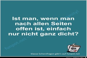 | Scherzfrage Bild (164.76 KB) 1Lustiges → Scherzfragen | Lustiges → Scherzfragen | 11.10.23-12:55 | Fossy | |