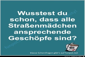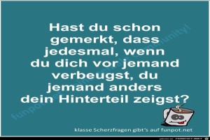 | Scherzfrage Bild (64.19 KB) 4Lustiges → Scherzfragen | Lustiges → Scherzfragen | 31.08.22-10:43 | Fossy | |
