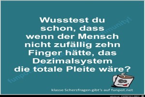 | Scherzfrage Bild (118.56 KB) 1Lustiges → Scherzfragen | Lustiges → Scherzfragen | 10.07.22-12:24 | Fossy | |