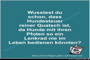 | Scherzfrage Bild (83.54 KB) 1Lustiges → Scherzfragen | Lustiges → Scherzfragen | 10.06.22-12:29 | Fossy | |