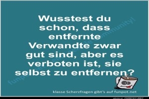 | Scherzfrage Bild (88.76 KB) 3Lustiges → Scherzfragen | Lustiges → Scherzfragen | 02.06.24-12:06 | Fossy | |