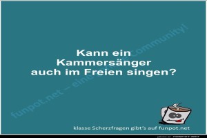 | Scherzfrage Bild (61.91 KB) 4Lustiges → Scherzfragen | Lustiges → Scherzfragen | 11.04.24-11:38 | Fossy | |