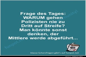 | Scherzfrage Bild (97.78 KB) 9Lustiges → Scherzfragen | Lustiges → Scherzfragen | 17.03.24-12:25 | Fossy | |