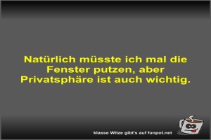 | Natürlich müsste ich mal die Fenster putzen Bild (23.25 KB) 1Lustiges → klasse Sprüche und Witze | Lustiges → klasse Sprüche und Witze | heute-12:36 | Fossy | |