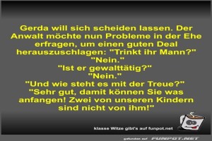 | Gerda will sich scheiden lassen Bild (48.04 KB) 3Lustiges → klasse Sprüche und Witze | Lustiges → klasse Sprüche und Witze | 13.12.24-12:09 | Fossy | |