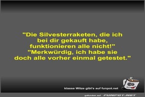 | Die Silvesterraketen Bild (29.29 KB) 5Lustiges → klasse Sprüche und Witze | Lustiges → klasse Sprüche und Witze | 14.12.24-19:31 | Fossy | |