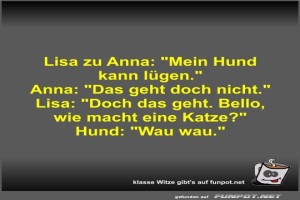 | Lisa zu Anna Bild (32.2 KB) 2Lustiges → klasse Sprüche und Witze | Lustiges → klasse Sprüche und Witze | 09.12.24-17:13 | Fossy | |