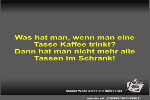 | Was hat man, wenn man eine Tasse Kaffee trinkt? Bild (26.21 KB) 4Lustiges → klasse Sprüche und Witze | Lustiges → klasse Sprüche und Witze | 07.12.24-18:04 | Fossy | |