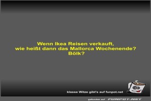 | Wenn Ikea Reisen verkauft Bild (17.94 KB) von Fossy am 06. Dezember 2024 um 16:37 Uhr Lustiges → klasse Sprüche und Witze | Lustiges → klasse Sprüche und Witze | 06.12.24-16:37 | Fossy | ||