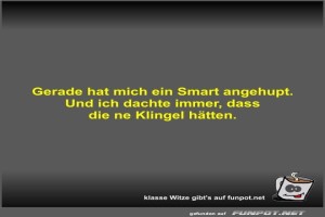 | Gerade hat mich ein Smart angehupt Bild (20.45 KB) 4Lustiges → klasse Sprüche und Witze | Lustiges → klasse Sprüche und Witze | 07.12.24-11:05 | Fossy | |