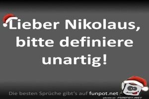 | Lieber Nikolaus Bild (59.87 KB) 8Lustiges → klasse Sprüche und Witze Ja, das wäre durchaus interessant zu wissen, was der Nikolaus so alles als unartig definiert. Ich wünsche dir einen super Nikolaus-Tag! | Lustiges → klasse Sprüche und Witze | 05.12.24-13:10 | ||