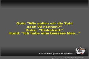| Gott: Wie sollen wir die Zahl nach 99 nennen? Bild (22.62 KB) 3Lustiges → klasse Sprüche und Witze | Lustiges → klasse Sprüche und Witze | 05.12.24-10:10 | Fossy | |