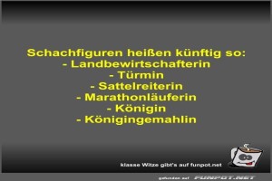 | Schachfiguren heißen künftig so Bild (29.03 KB) 4Lustiges → klasse Sprüche und Witze | Lustiges → klasse Sprüche und Witze | 27.11.24-17:12 | Fossy | |