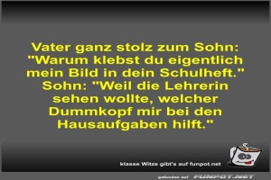 | Vater ganz stolz zum Sohn Bild (40.19 KB) 3Lustiges → klasse Sprüche und Witze | Lustiges → klasse Sprüche und Witze | 29.11.24-17:33 | Fossy | |