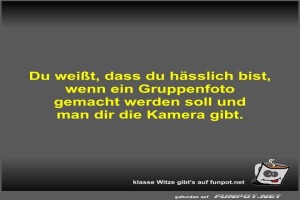 | Du weißt, dass du hässlich bist, wenn ein Gruppenfoto... Bild (27 KB) 1Lustiges → klasse Sprüche und Witze | Lustiges → klasse Sprüche und Witze | 26.11.24-09:46 | Fossy | |