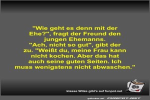 | Wie geht es denn mit der Ehe? Bild (37.83 KB) 2Lustiges → klasse Sprüche und Witze | Lustiges → klasse Sprüche und Witze | 24.11.24-11:38 | Fossy | |
