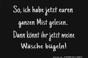 | Den ganzen Mist gelesen Bild (17.36 KB) 1Lustiges → klasse Sprüche und Witze | Lustiges → klasse Sprüche und Witze | 19.11.24-13:03 | Louie44 | |