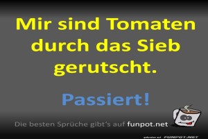 | Passiert Bild (62.51 KB) 10Lustiges → klasse Sprüche und Witze Ja, sowas kann durchaus mal passieren, dass die Tomaten dann passiert sind :-) | Lustiges → klasse Sprüche und Witze | 20.11.24-09:32 | ||