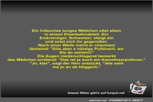| Ein hübsches junges Mädchen sitzt allein in einem... Bild (35.39 KB) 1Lustiges → klasse Sprüche und Witze | Lustiges → klasse Sprüche und Witze | 18.11.24-19:01 | Fossy | |