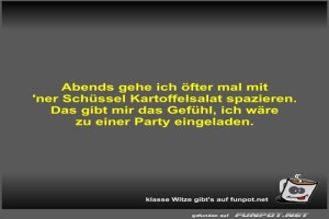 | Abends gehe ich öfter mal mit 'ner Schüssel Kartoffelsalat Bild (25.53 KB) 1Lustiges → klasse Sprüche und Witze | Lustiges → klasse Sprüche und Witze | 20.11.24-09:41 | Fossy | |