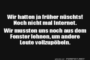 | Wir hatten nüschts Bild (27.51 KB) 3Lustiges → klasse Sprüche und Witze | Lustiges → klasse Sprüche und Witze | 19.11.24-15:52 | ||