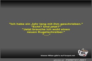 | Ich habe ein Jahr lang mit ihm geschrieben Bild (21.26 KB) 2Lustiges → klasse Sprüche und Witze | Lustiges → klasse Sprüche und Witze | 16.11.24-11:08 | Fossy | |